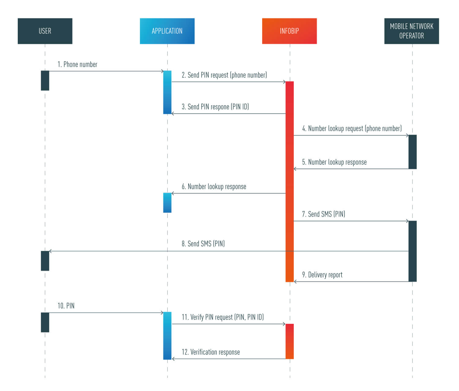 - Application sends a request for the PIN code with the user’s phone number to Infobip
