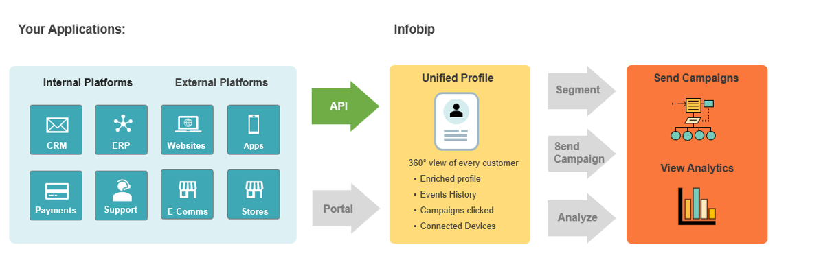 By storing people profiles at the Infobip platform, you eliminate the need of manual import and export of data to every time you want to send a communication - reduce the time for preparing messages and automate that part of your business process.