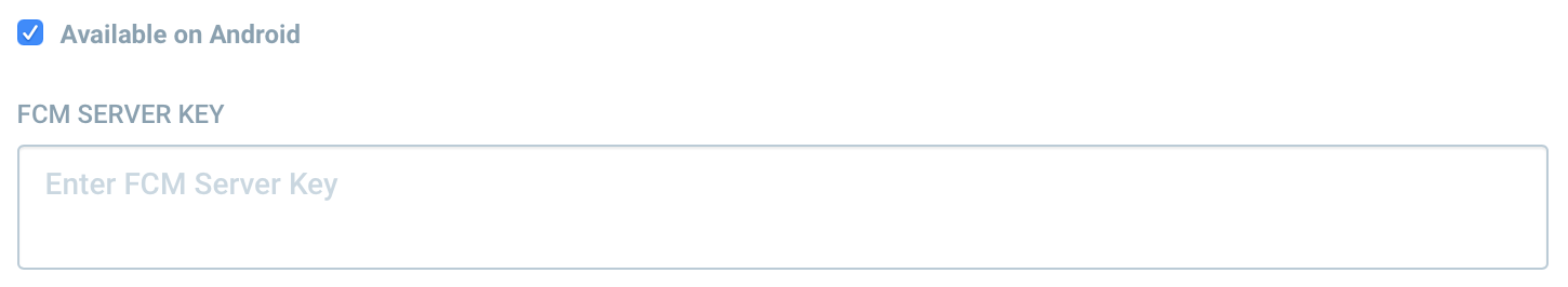 To enable push notifications for FCM just mark the checkbox and insert an FCM Server Key you issued in the FCM Server API-Key Setup Guide. Click the Save button to apply the FCM Server Key.