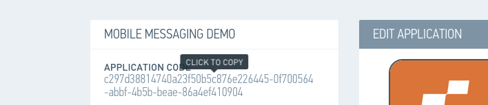 Application Code is the application identifier which links your mobile application to the application profile created in the Infobip Platform. It is required to insert the Application Code in the Mobile Messaging SDK configuration once you implement it in your mobile application.