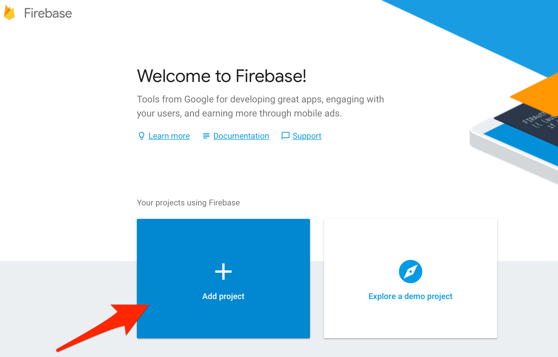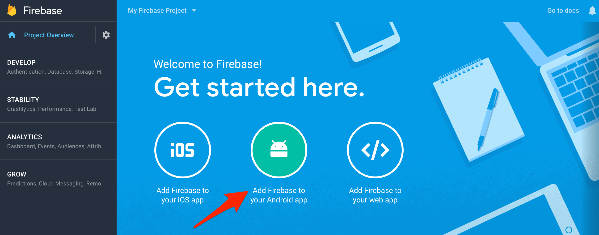 Once the new project is created, choose "Add Firebase to your Android app" on the overview screen.