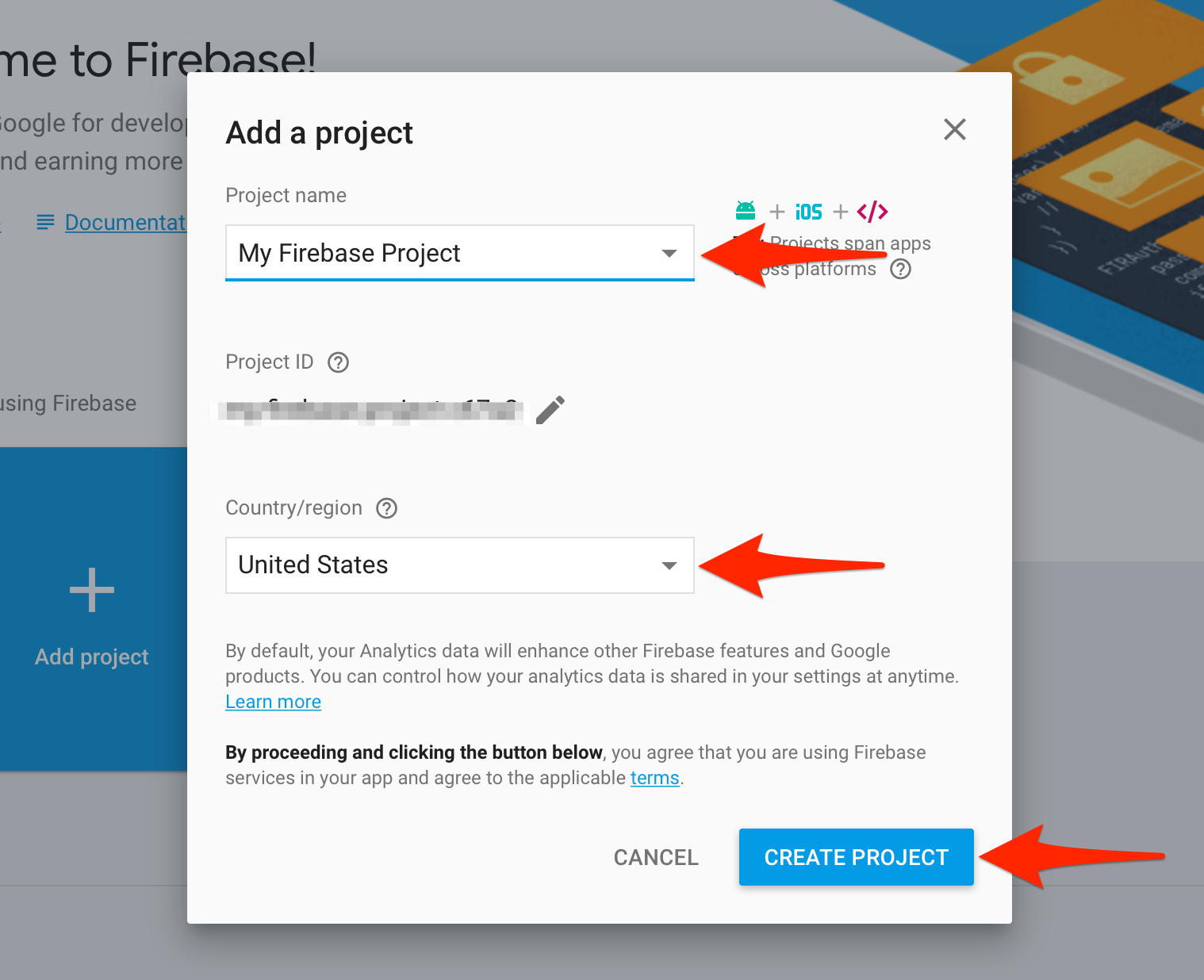 Firebase Cloud Messaging is a cross-platform cloud messaging service which allows Infobip to send Push Messages from the Infobip server to your users’ Android-powered devices. You will need to create and configure project at Firebase Console to enable Push Notifications for your Android applications.