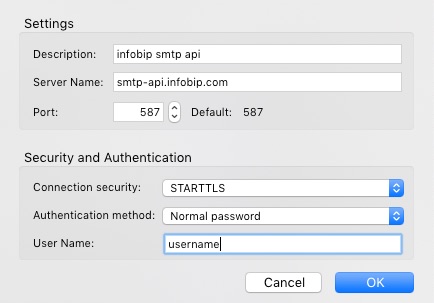 Infobip SMTP API behaves in the same way as any SMTP compliant server (for example your ISP, Gmail, or your corporate email server). This means that you can configure any mail client such as Outlook or Thunderbird to use Infobip SMTP as a relay. There is however a restriction in sender which can be used for relying upon the messages, and of course, you should be authenticated with Infobip supplied credentials.