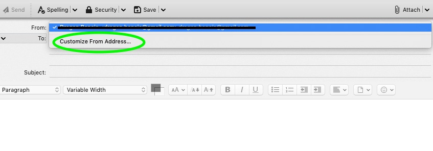 After that, you can start composing the email. Since senders are restricted on Infobip platform, you must use one of your Infobip verified domains (or registered senders) for "from" address. In Thunderbird, this may be achieved by clicking on "Customize From Address" in "From" field.
